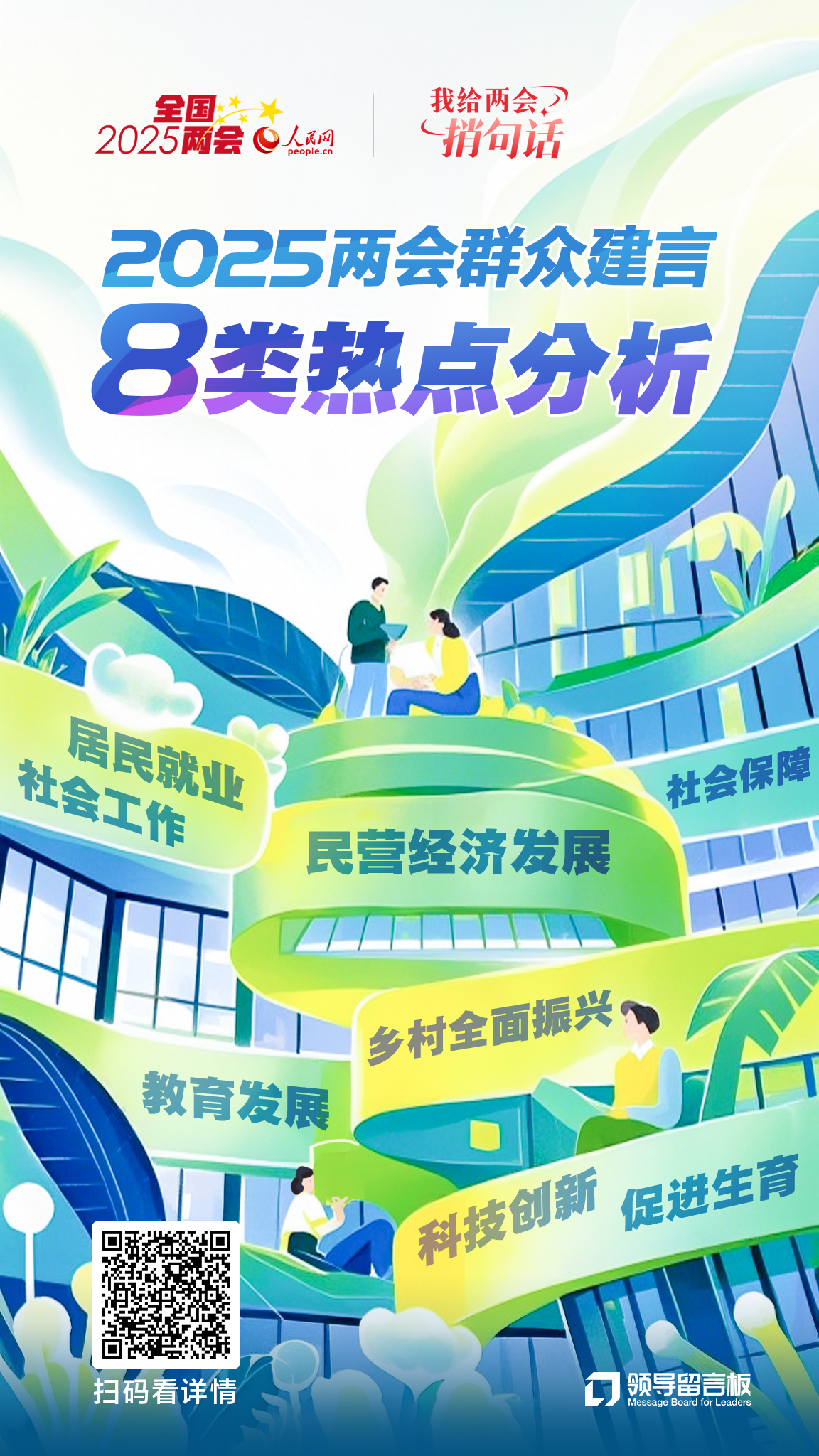 2月12日至3月11日,人民網一年一度的全國兩會大型互動IP“我給兩會捎句話”建言征集活動再次成功開展,活動首次引入智能語音留言、AI文本輔助生成等新技術應用,實現從“動動手”到“動動口”留言方式的轉變,讓廣大群眾更加暢通地說出“心里話”,陸續收到群眾各方面意見建議超過16萬件。從不同群體留言量占比數據分布看,從企事業單位職工到自由職業者、離退休人員,各類參與者較為均衡,群眾留言涵蓋經濟、社會、民生等各個領域,生動反映了群眾對于美好生活的期盼。