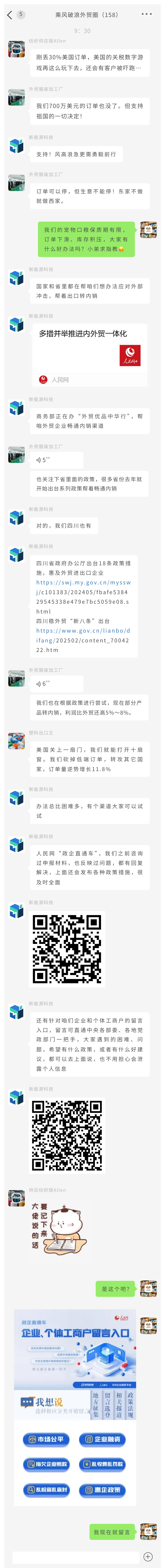 美國的關稅政策給我國外貿企業帶來了沖擊,企業家們“聚在”一起,互相支招